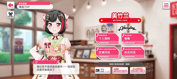1.这是吉他、主唱美竹 兰(Mitake Ran)。一般简称为兰,ran。CV:佐仓绫音
