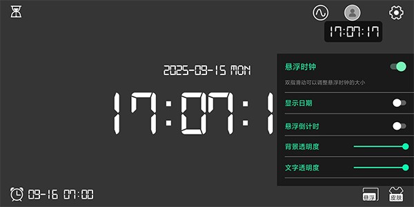 1、全屏时钟+酷炫皮肤,悬浮时钟;