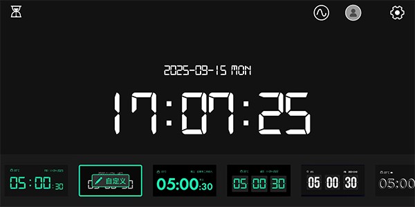 2、点击左上角沙漏按钮,可以切换计时器或倒计时功能;