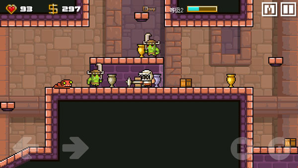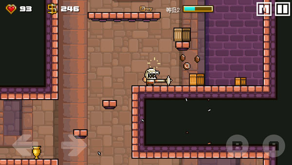 游戏画面质量虽简单,但是内容却丰富多彩,同样在操作上的表现也是如此,玩家只需要点击左下角的左右按键就能控制人物移动,而右下角的A/B按键可以控制人物的攻击和跳跃,并且长按跳跃键还能向下跳跃哦。