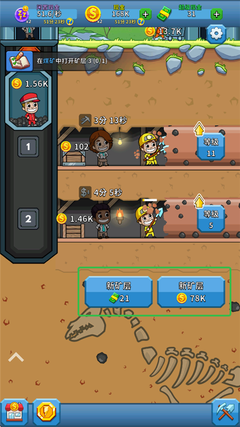 ※合理使用加速功能与金币卡,快速提升矿场等级与收益速度。