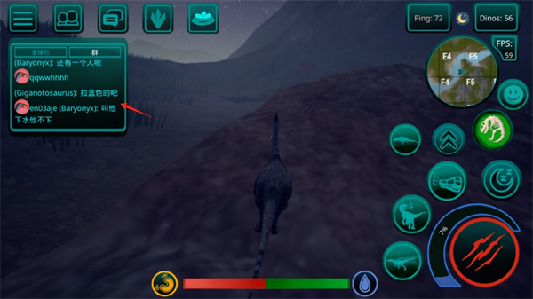 如果你是肉食恐龙,那么就需要杀死其他玩家的恐龙来获取自己的肉食,如果是草食动物,那么食物就比较简单了,需要特殊的蕨类植物,可以获得足够的蕨类植物!地图上的任何湖泊或水库都可以饮用。