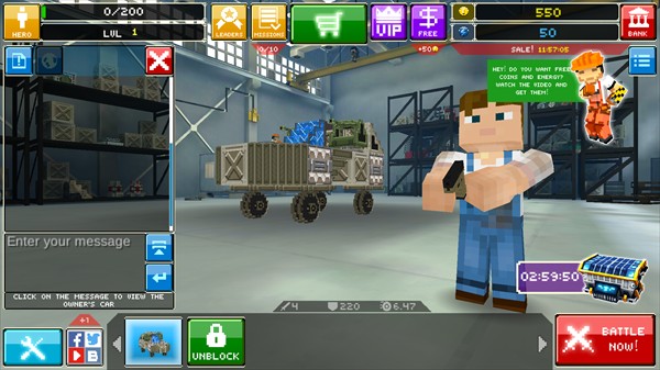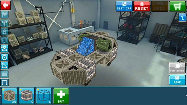 2、游戏商店中可以购买到各类战车组建,包括方形模块、三角模块、舱口甲板、车轮、炮塔、盾牌、涡轮机、尾翼等等,你可以发挥自己的创意,自由搭配组合,打造你专属的无敌战车。