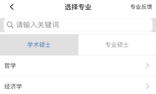 那么这个分类就是针对专业的内容,下面的内容和修改院校就不同了,我们点击我们之前选择的专业之后,会直接进入一个列表,是所有关于【学术硕士】和【专业硕士】的专业,我们如果要修改,就只需要在下面中选择就可以了。