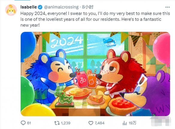 《集合啦!动物森友会》官方在推特发文庆贺新年的同时宣布,2024年对于居民来说是最美好的一年,或许暗示了新作或是重磅更新!