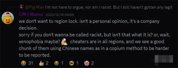 即便游戏用了EAC反作弊系统,还声称还有其他额外的反作弊措施,但效果并不尽如人意,作弊行为依旧猖狂。甚至在前段时间,国外有玩家声称很多作弊者来自中国,并希望开发商能锁中国区,以此应对外挂泛滥的问题。