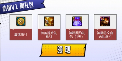 1、首先是根据心悦等级发放的周礼包以及月礼包。