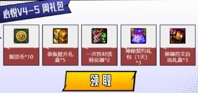 5、分为周礼包和月礼包,心悦等级越高获得道具越好。