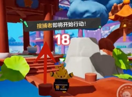 1、首先我们在游戏中来到躲猫猫模式,然后穿过拱门往图上位置前进。