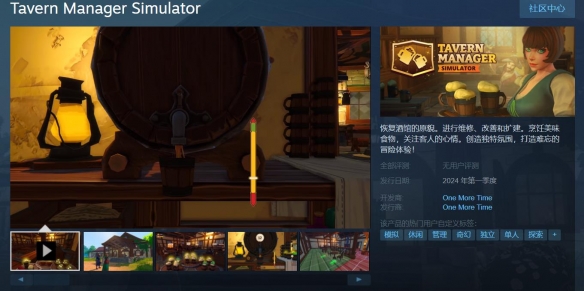 One More Time制作并发行,一款中世纪幻想风格经营新游《酒馆经理模拟器》Steam页面上线,预定今年一季度开启抢先体验,本作支持中文。
