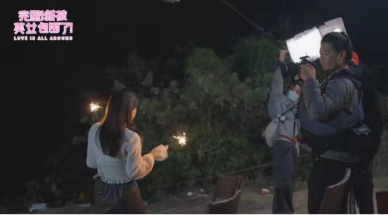 夜幕降临,百家灯火,但制作组仍在城郊忙碌着拍摄夜戏,那手持烟花的女孩,倩影在火光中摇曳,轮廓优雅而温柔。