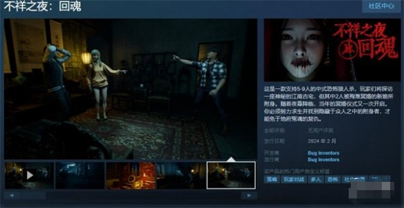 今日,由Bug Inventors工作室开发并发行的中式恐怖狼人杀游戏《不祥之夜:回魂(Sinister Night: Revive)》上架Steam页面,将于2024年2月发售,支持简体中文。