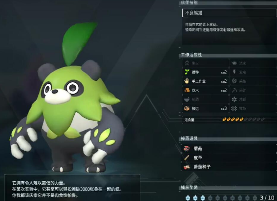 它拥有令人难以置信的力量。在某次实验中, 它甚至可以轻松撕破3000张叠在一起的纸。 你我都该庆幸它并不是肉食性帕鲁。 |
