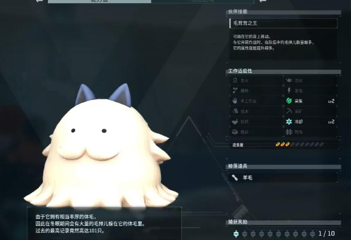 毛茸茸之王:可骑在它的背上移动。 与它并有作战时,在队伍中的毛掸儿 数量越多它的属性就能提升越多。 |