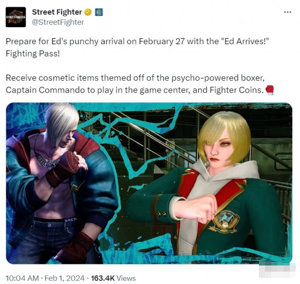 今日,官方宣布《街头霸王6(Street Fighter 6)》的DLC角色Ed将于2月27日上线。