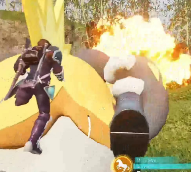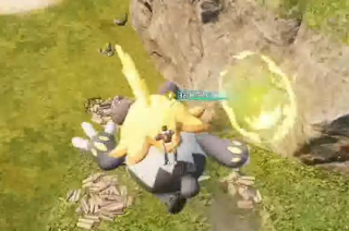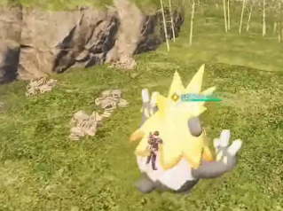 2、我们用雷胖达的伙伴技能对竹林进行轰炸,就可以强行采集木材。