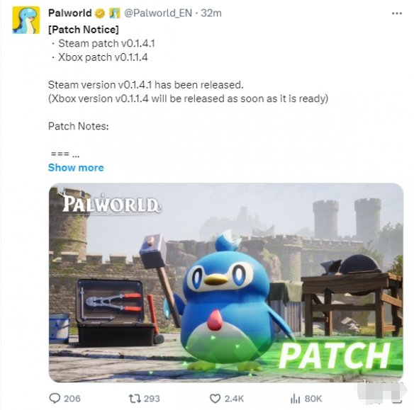 《幻兽帕鲁》Steam版今日更新了v0.1.4.1版本,修复了多个问题,Xbox版本v0.1.1.4更新将在准备就绪后尽早发布。