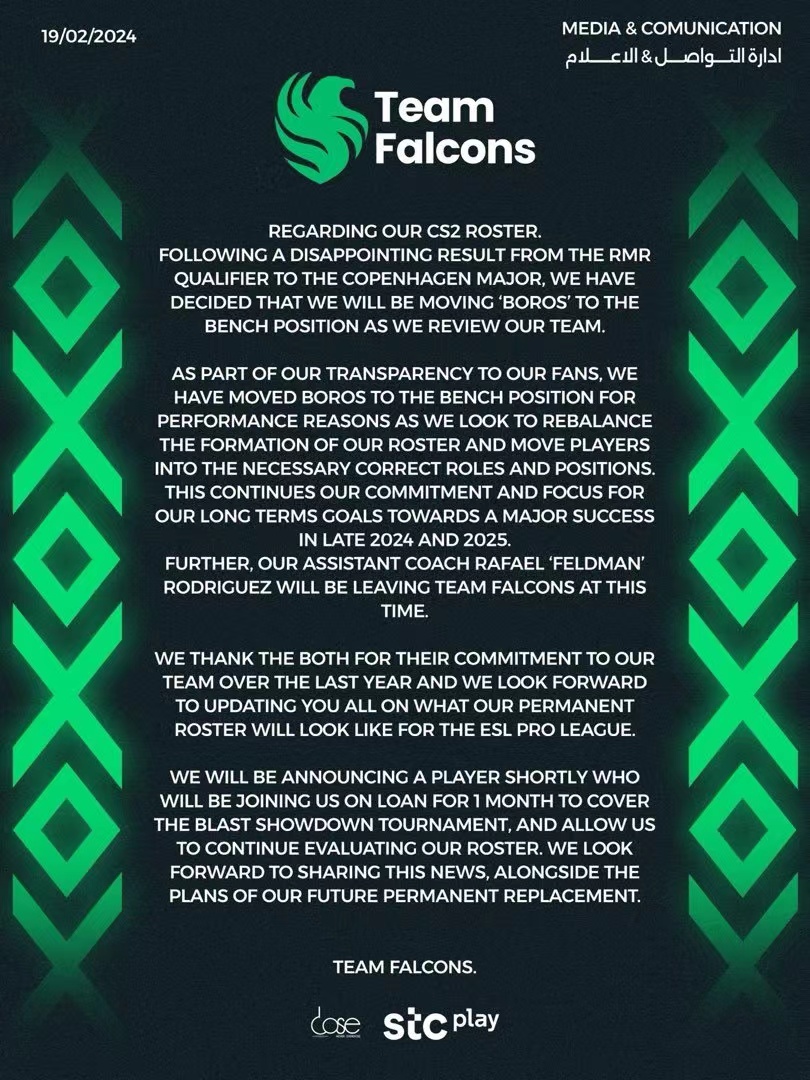 关于我们CS2的阵容,在本次RMR海选中我们遭遇淘汰之后,决定将BOROS下放,以重新寻找合适的选手。