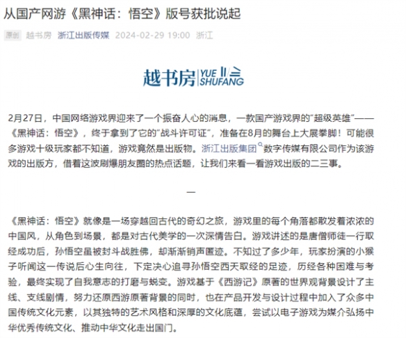 出版方也表示,游戏基于《西游记》原著的世界观背景,设计了主线和支线剧情。从这个角度来看,游戏的最终呈现将会是令人期待的。