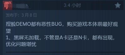 大部分玩家认为此游戏内捏脸选项众多且细致入微,然而有些人对仅限捏脸的试玩版给出了负面评价。他们抱怨在游戏过程中出现了黑屏、崩溃以及延迟等问题,担忧正版游戏的优化效果。另有部分玩家直言自己无法塑造出满意的角色形象。