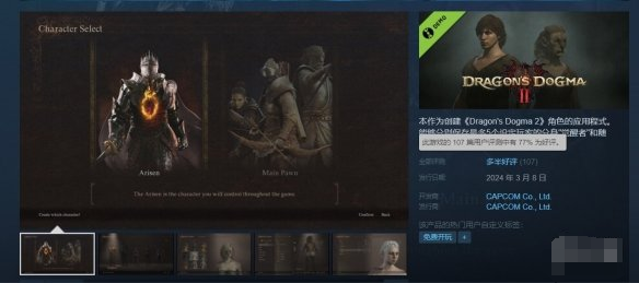 《龙之信条2(Dragons Dogma 2)》「角色编辑&保存」试玩现已推出,玩家可预先自定五名觉醒者及追随者,其设定将在正版游戏中保留。目前这一试玩的评价已经出炉,整体为多半好评,107篇评测中有77%的玩家给出好评。