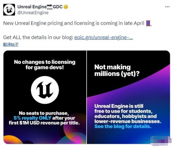 近日,Epic发文确定将在四月下旬调整虚幻引擎的收费模式,但这次调整只会对非游戏开发者产生影响,游戏开发者的收费模式将保持不变。