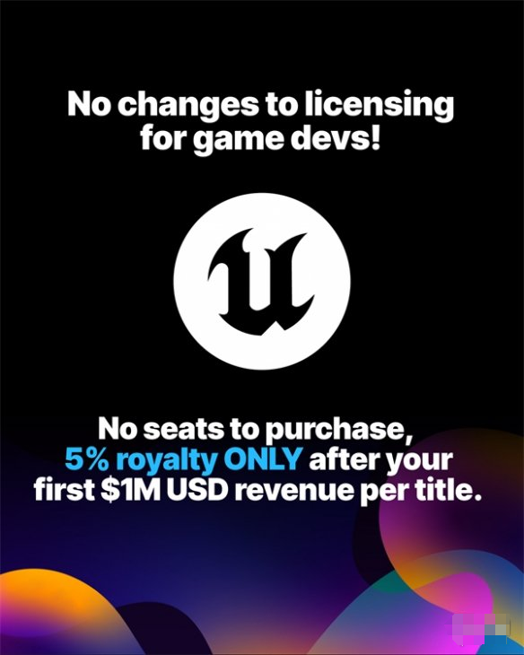 Epic坚守承诺的决定让开发社区松了一口气。去年,Unity宣布将按照游戏下载量向开发者收费,这震惊了整个开发社区。虽然Unity随后道歉并取消了部分计划,但这也导致开发社区对Unity的不信任。