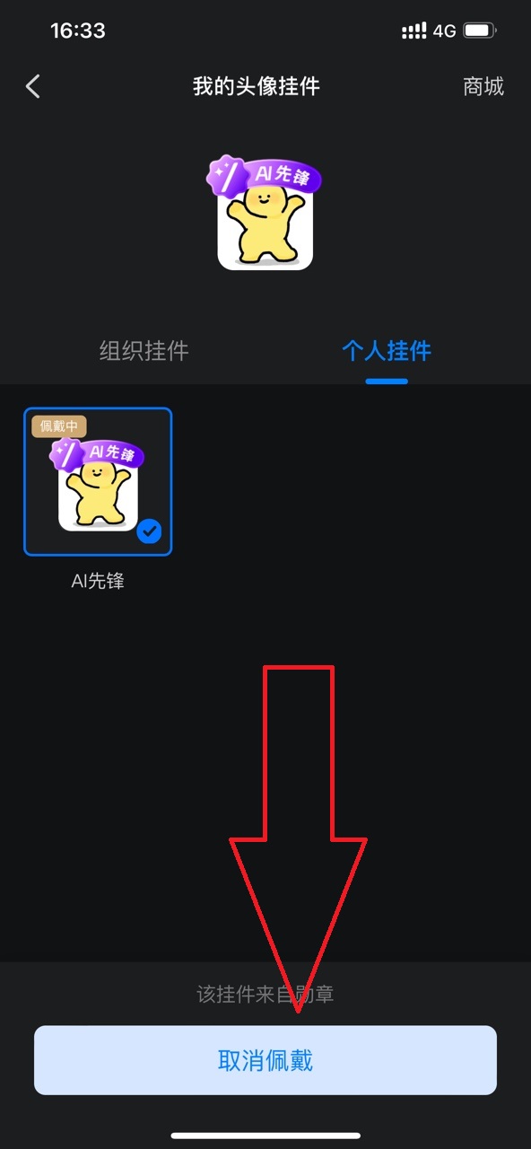 4.在这里就可以选择取消挂件显示了,退出之后就可以看见自己的头像挂件没有了。