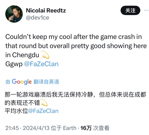 device在赛后对本次赛事发表了评论:“在那一轮比赛失败后我无法保持冷静,但总的来说我认为队伍在成都这里表现得相当不错。 GGWP。”