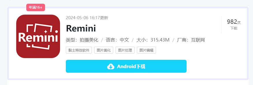 1、首先我们先获取最新版本的remini应用,并在手机上完成安装。