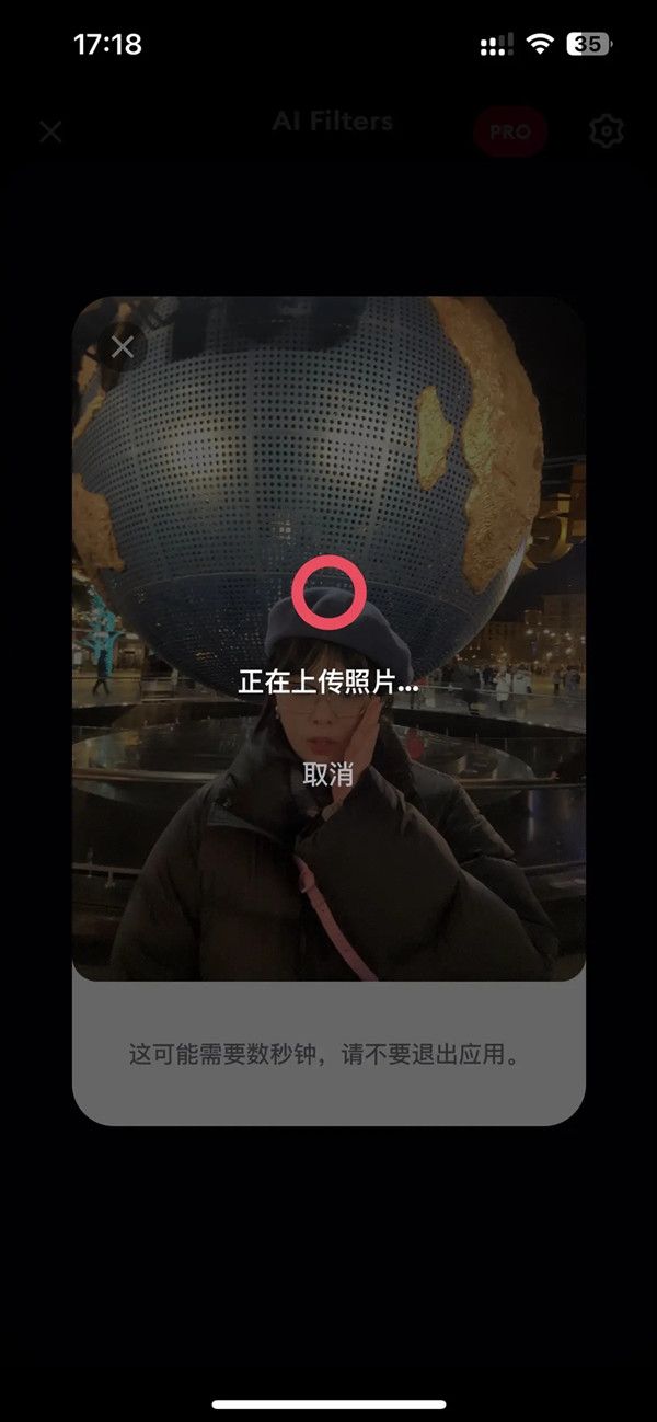 4、随后应用会开始进行合成处理,该过程需要一些时间,在上传过程中比较缓慢,需要用户耐心进行等待,在处理结束后就可以获得黏土滤镜的图片了。