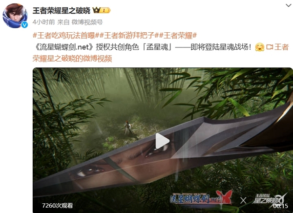 在王者荣耀星之破晓宣布全新吃鸡模式即将上线后,紧接着就宣布了与流星蝴蝶剑的全新共创英雄孟星魂。