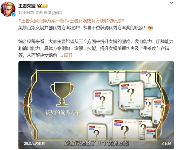 在经历多个英雄翻新并变异后,一直默默无闻的女娲终于被策划发现并开启共创方案,目前共选出十款共创方案。