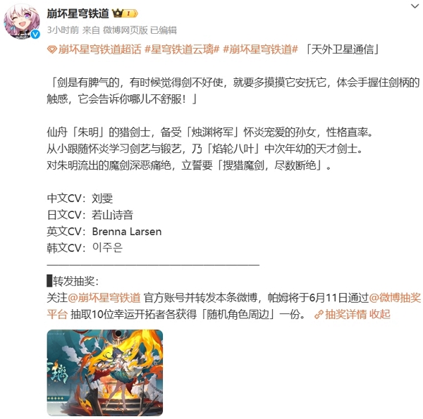 按照惯例,该角色将在不久之后的新版本当中正式放出。几天后将是崩坏星穹铁道的版本直播,届时应该会有更多相关消息放出。