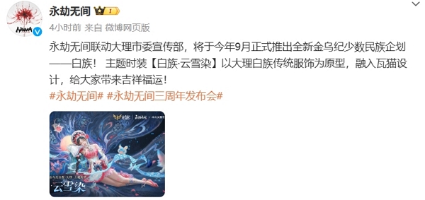 永劫无间不久前正式宣布将推出全新的金乌纪少数民族企划,本次少数民族联动为白族,将推出全新服饰。