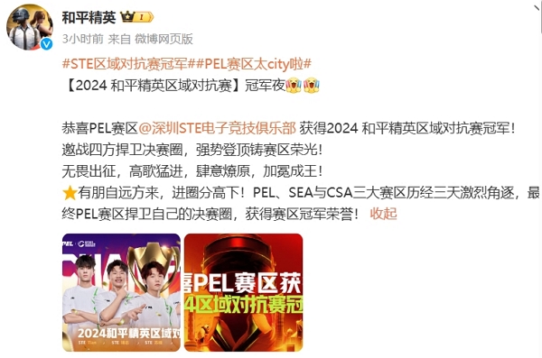 不久前2024和平精英区域对抗赛结束,深圳ste战队获得了该比赛的冠军。