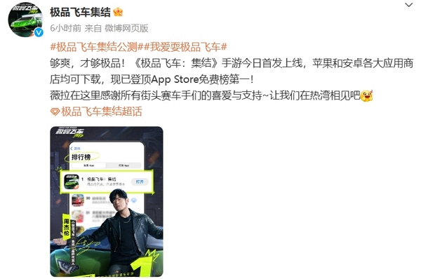 极品飞车集结获ios免费榜第一 今日公测中。开放世界赛车手游极品飞车集结在今日正式上线,游戏一经上线火爆异常,当前已登顶ios免费榜。