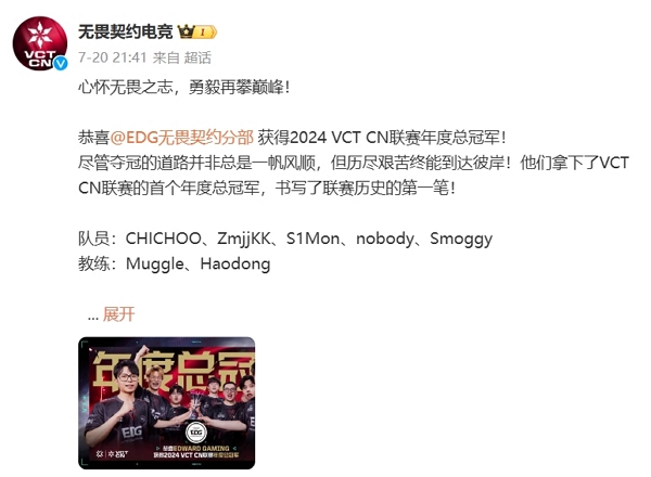 edg战队获2024cn联赛年度总冠军 无畏契约全球冠军赛即将开始。不久前2024cn联赛决赛结束,edg战队获2024cn联赛年度总冠军。与此同时,无畏契约全球冠军赛即将开始。