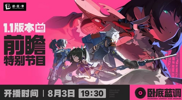 绝区零在不久前表明了有关1.1版本卧底蓝调直播的时间,官方表示本次直播将会在8月3日晚上7点半正式开启。
