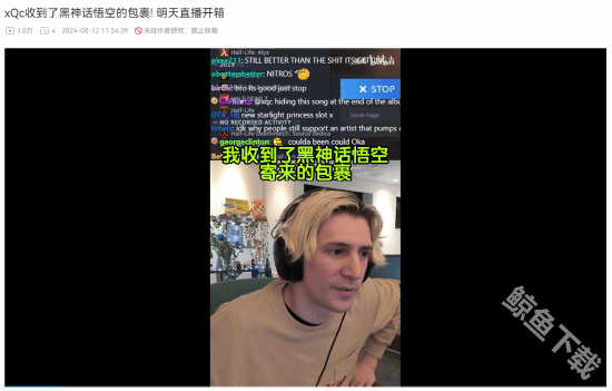 北美顶流网红xqc在近日的直播中表示他目前收到了黑神话悟空寄来的包裹,将于明天的直播中为观众们一同直播开箱。