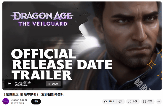 BioWare今天宣布龙腾世纪4影障守护者发售日预告片将于8月16日0点正式公布,但由于广告提前泄露了这款游戏的发售日期,在广告中显示将于10月31日正式发售,发售日公布的当天(8月16日)开启预购。