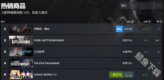 截止发稿前,黑神话悟空也就在30多个国家队热销榜单中位列第一段位置,而且steam同时在线人数也来到了惊人的144万多,超越之前非常热门的游戏,成为steam历史总榜的第四。