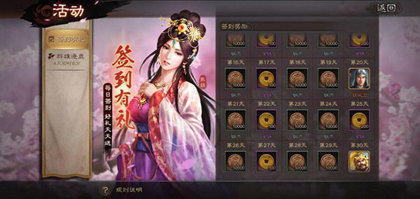 主线任务的金铢只是第一步,接下来我们要将目光投向游戏界面左上角的“活”字,点击进入活动页面。在这里,你会发现签到活动是一个简单而高效的金铢获取方式。只要按时签到,每月可以轻松获得800金铢!这意味着你每个月能节省约40次升级的等待时间,相当于可以加速大约12天的游戏进程,大大提升效率。