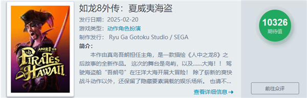 如龙系列的忠实粉丝众多,而本作的外传将继续延续这一系列的魅力。如龙8外传结合了日式动作与角色扮演元素,这一独特的玩法又使得它在竞争激烈的市场中脱颖而出。作为一款兼具深度剧情和精致动作的游戏,它将在市场中与其他大作争夺玩家的注意力。