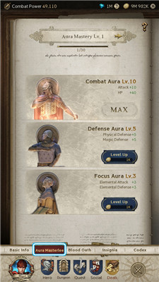 点击君主头像进入光环精通,选择攻击、防御或元素属性进行强化。