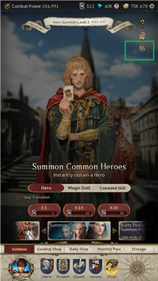 召唤英雄、魔法宠物及法术,随召唤次数提升召唤等级,提高稀有角色概率。