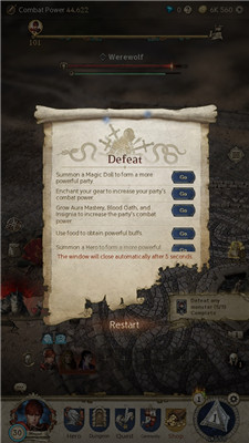 战斗中英雄死亡可能导致失败,强化君主与英雄后可重新挑战。