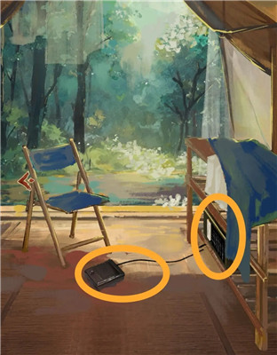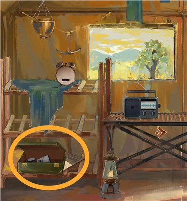 木板下面有一根断裂的天线,收音机旁边有胶带。在物品栏里,将坏掉的天线与胶带结合,修复成完好的天线,再将其安装到收音机上。接着,调节收音机上的两个按钮,使两条波长重合(如下图所示)。