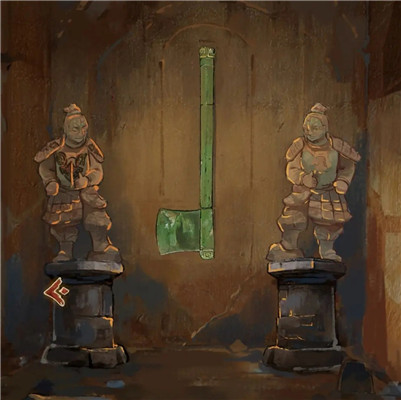 将雕像中间的武器拼成青铜斧,获得另一个神人面具。