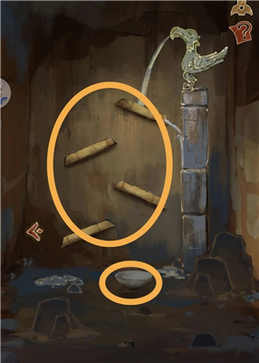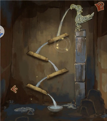 找到水流场景,将竹筒的方向调整至指定位置,直到玉瓷碗下方盛满水,之后拿走水。